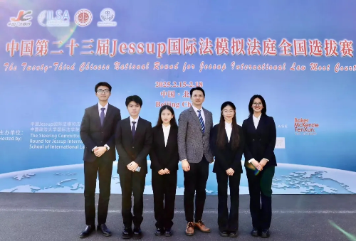 (汕头大学法学院参加“杰赛普”国际模拟法庭比赛中国赛区赛事师生合影)