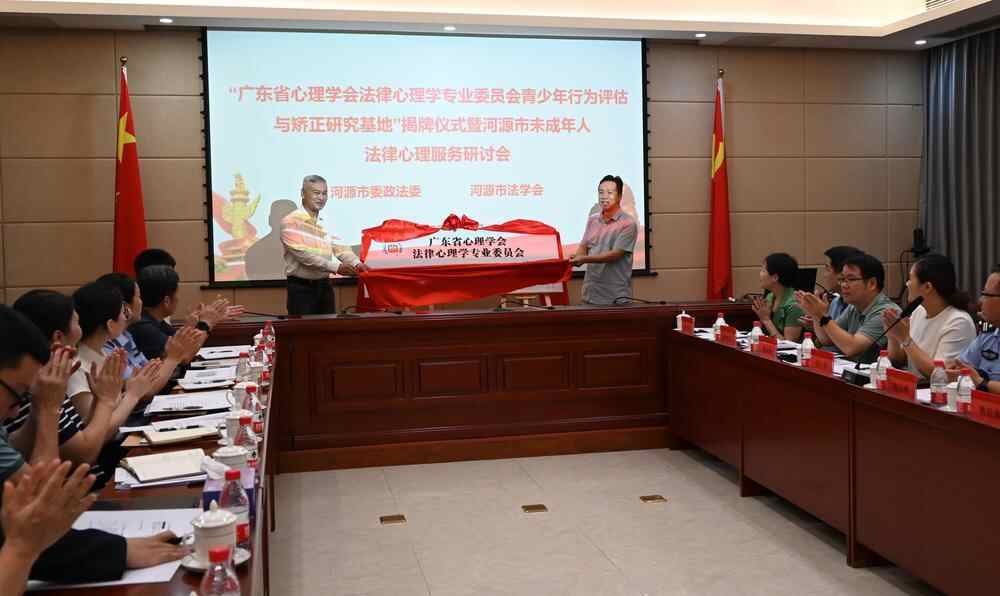 日前,河源市委政法委、河源市法学会举行“广东省心理学会法律心理学专业委员会青少年行为评估与矫正研究基地”揭牌仪式。“广东省心理学会法律心理学专业委员会青少年行为评估与矫正研究基地”在河源市正式揭牌落成,该基地的建立也是全省首创之举,标志着河源市保护未成年人工作向前迈进一大步。