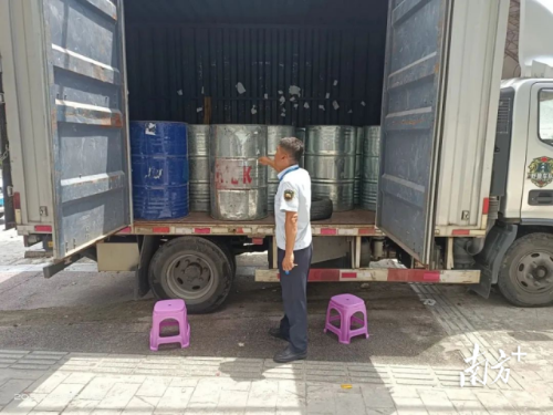 一阵刺鼻的气味从一仓库内传出,横沥镇网格员梁炽辉、梁换弟凭借工作敏感性发现有蹊跷,进去查看——映入眼帘的是20个大小不一的铁桶,里面散发出阵阵刺鼻性气味。“这里疑似危化品窝点,要马上上报!”接报后,横沥镇智网中心协调相关执法部门到场处置。经查,该场所非法贮存危化品约3.2吨。